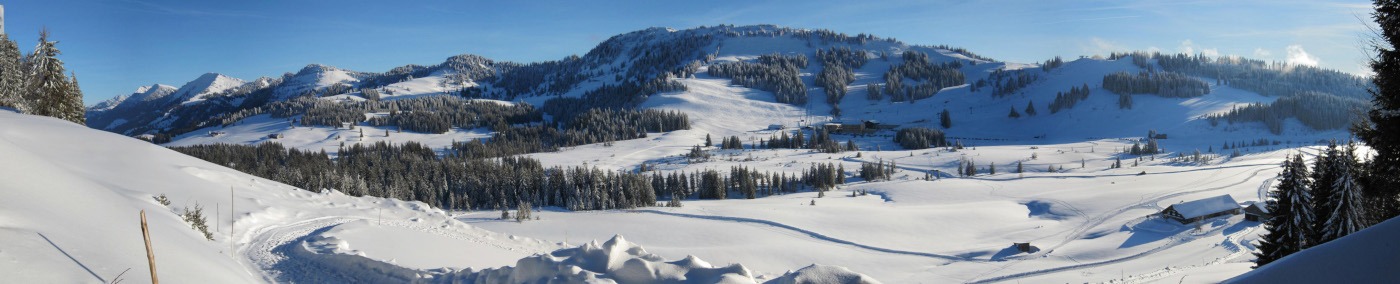 Wir befinden uns auf einer riesigen Hochebene und dem Hochmoor unterhalb des Hochhäderich einem Teilmassiv der Nagelfluhkette. Hier ist immer viel Betrieb im Sommer und im Winter. Die Wanderwege führen in alle Richtungen. Die Schweregrade der Wanderungen halten sich in Grenzen. Also, von leicht bis ca. mittelschwer.