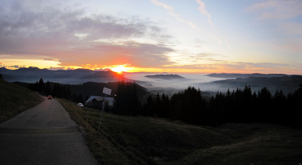 Der Scheidegger-Höhenweg ist ein wunderschöner Panoramaweg, der sich ideal für eine Wanderung an einem sonnigen Urlaubstag eignet. Der Ausgangspunkt ist das Kurzentrum Rosenalm, und der Weg führt vorbei am Klettergarten und entlang der Kurpromenade in Richtung Postferiendorf. Durch den Naturpfad geht es am Alpenfreibad vorbei. Vor dem Postferiendorf geht es über einen schmalen Pfad hinauf zum eigentlichen Höhenweg. Der Weg ist auch im Winter begehbar und bietet eine schöne Aussicht auf die Nagelfluhkette, den Bregenzerwald und die umliegende Allgäuer-Landschaft. Der Weg endet am Gästehaus Montfort in Richtung St. Gallus-Weg.