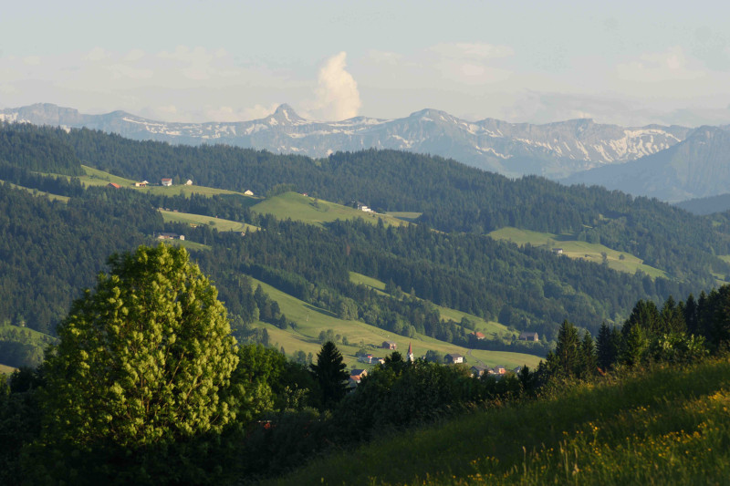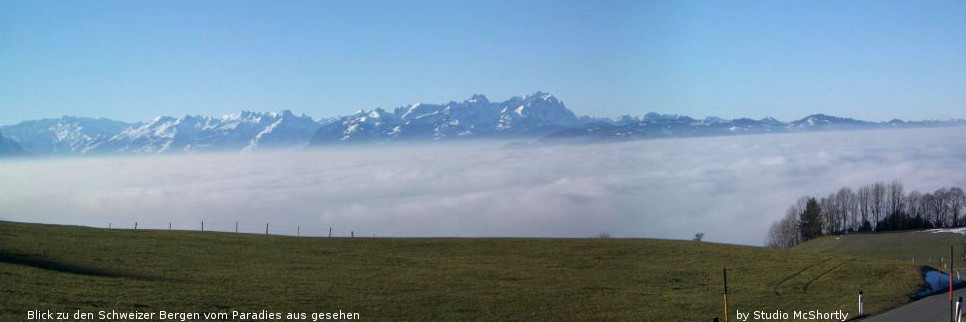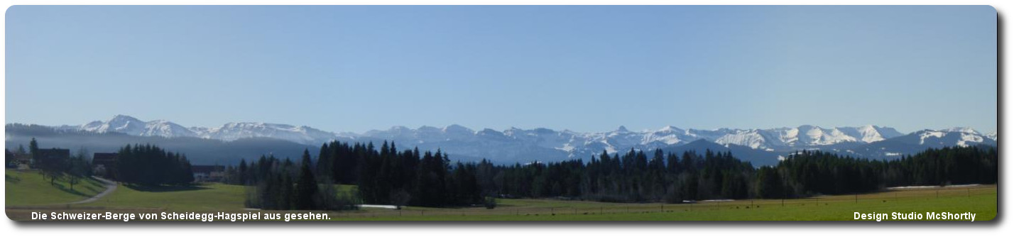 Die Beschreibung Sonnenterrasse trifft auf Scheidegg im Westallgäu zu. Von dieser Hochebene aus, in ca. 800 bis 1000 Meter Höhe, hat man einen fantastischen Rundblick auf die Alpen in Österreich und der Schweiz.