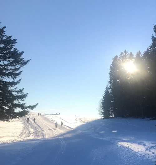 Flutlicht-Langlauf: : Von Montag bis Freitag kannst du auch am Abend langlaufen. Der vier Kilometer lange Rundkurs ist bis 20:30 Uhr ausgeleuchtet.